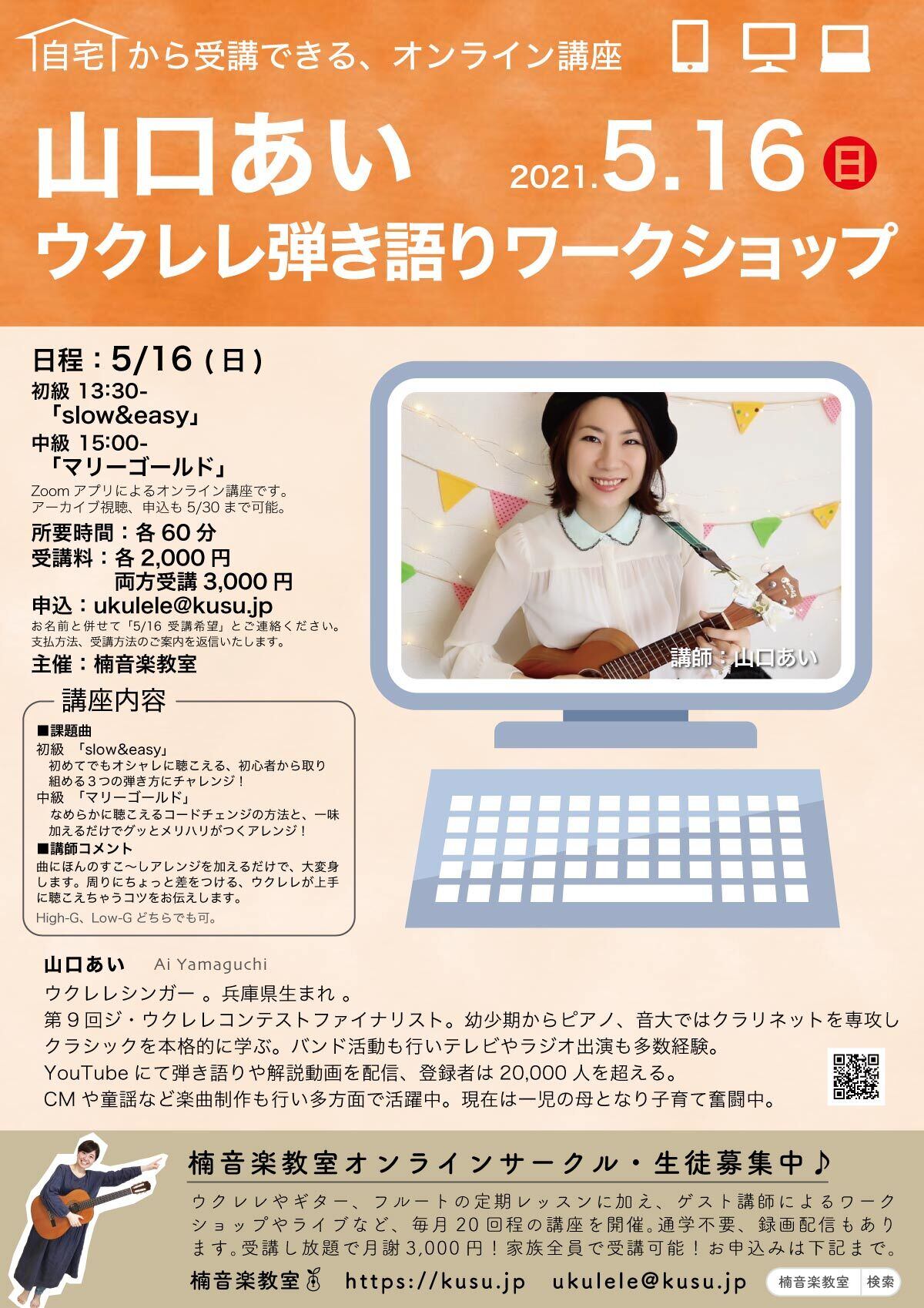 5/16(日)に行われた「山口あい 弾き語りワークショップ・初級 “Slow&Easy”」のアーカイブ申込み