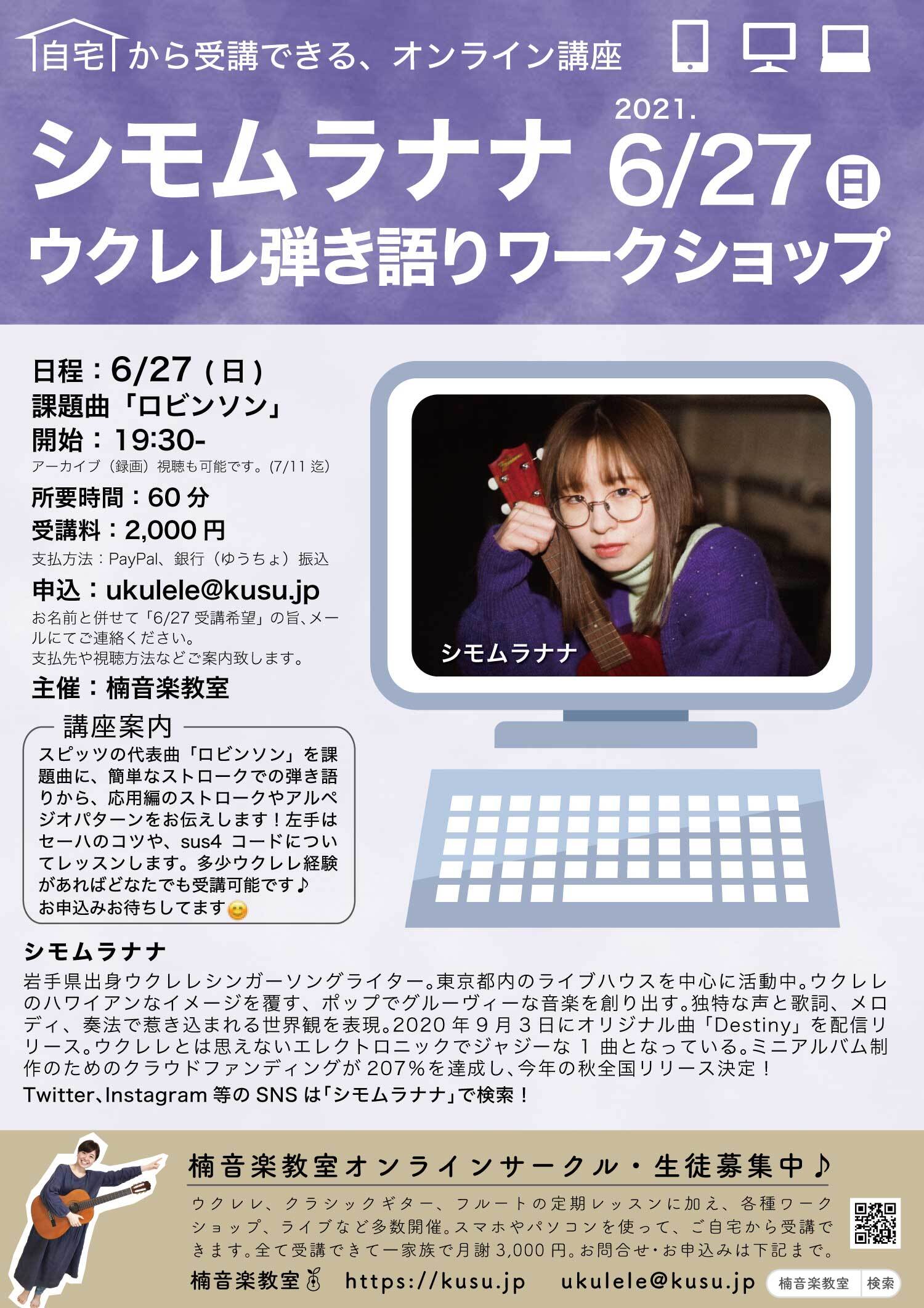 6/27(月)「シモムラナナ ウクレレ弾き語りワークショップ」アーカイブ申込み