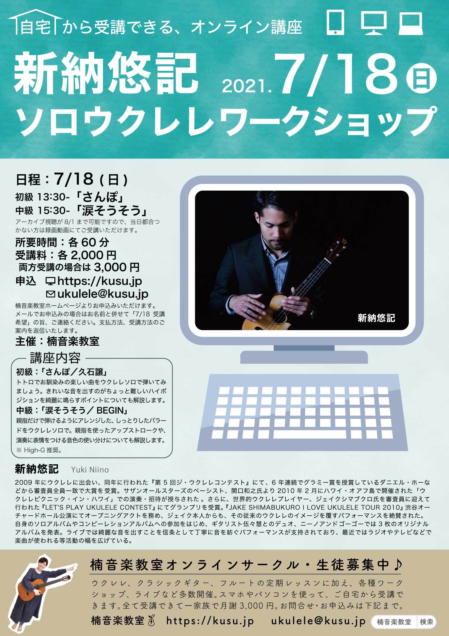 7/18(日)「新納悠記ソロウクレレワークショップ」アーカイブ申込み