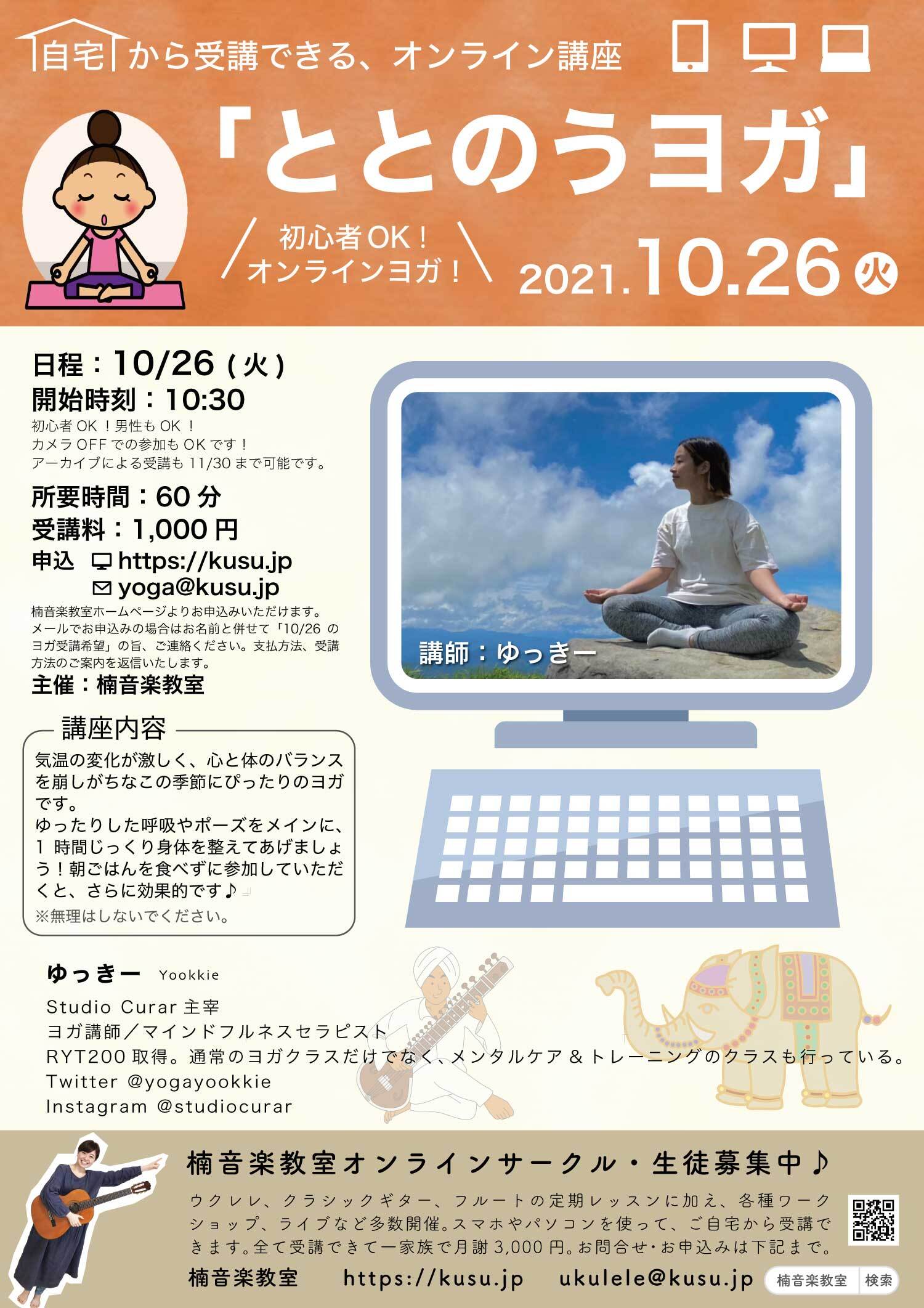 10/26(火)オンラインヨガ「ととのうヨガ」申込み