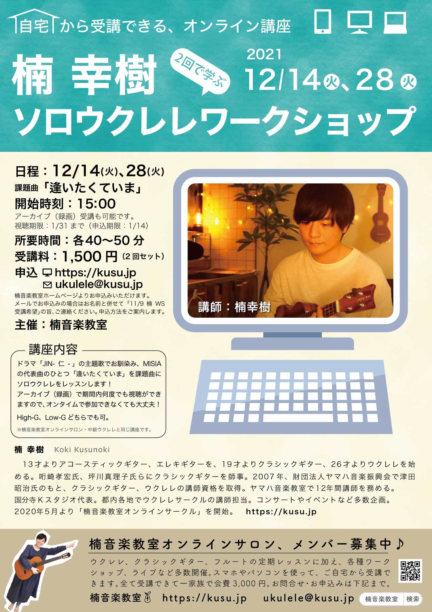 12/14(火)、28(火)「楠幸樹ソロウクレレワークショップ」