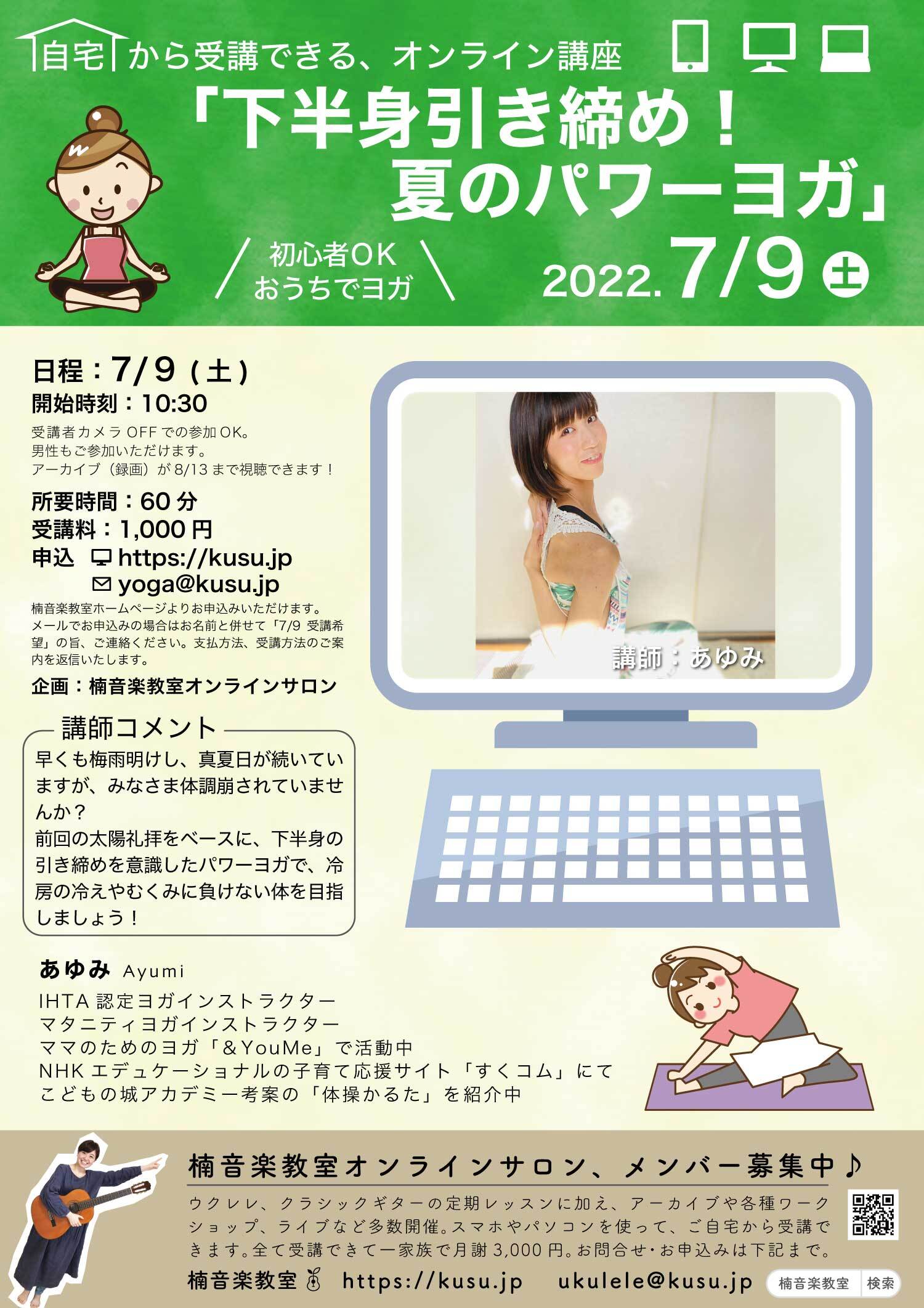 7/9(土)10:30-ヨガ「下半身引き締め!夏のパワーヨガ」/あゆみ