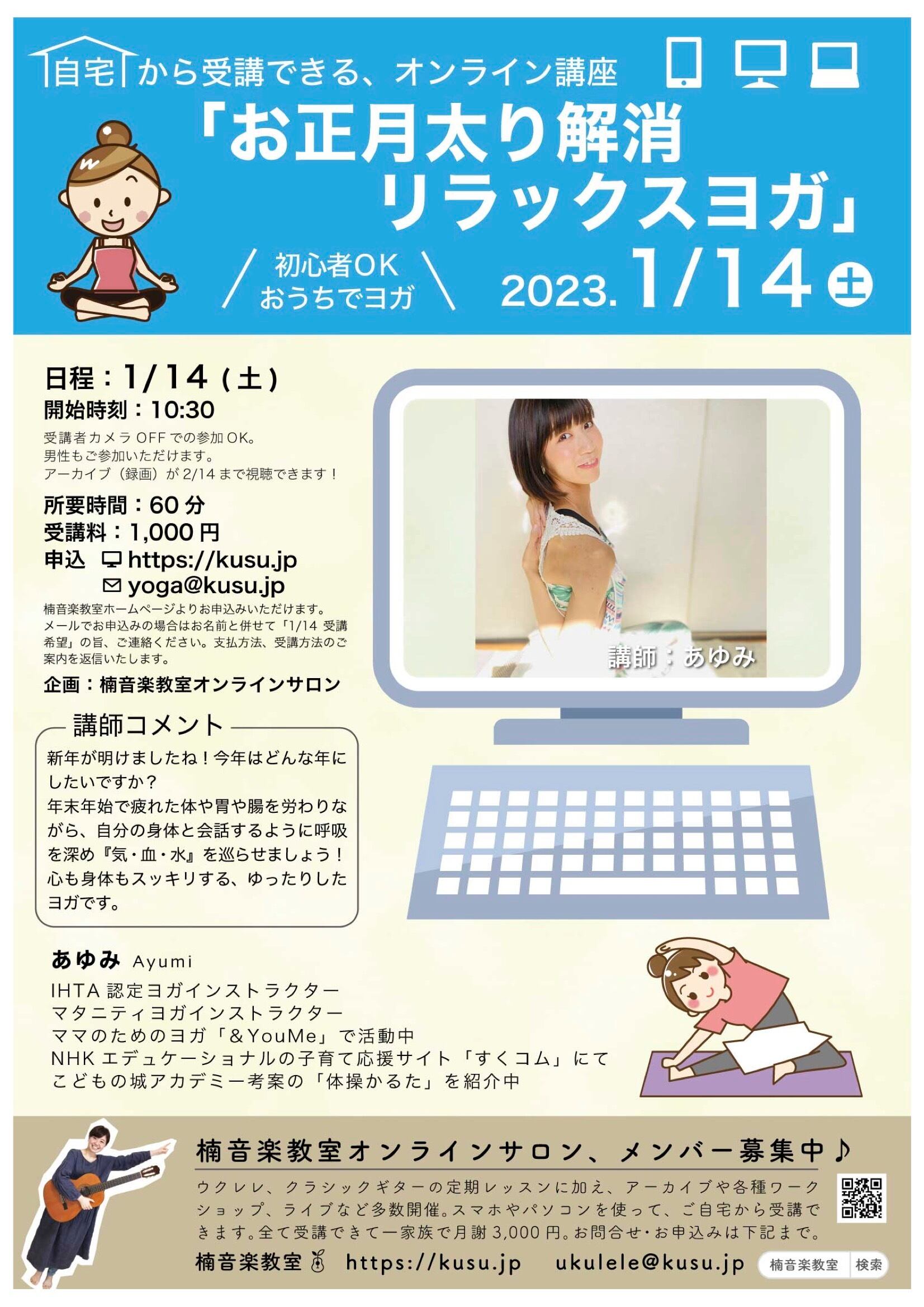 【アーカイブ】1/14(土)10:30-「お正月太り解消リラックスヨガ」/あゆみ